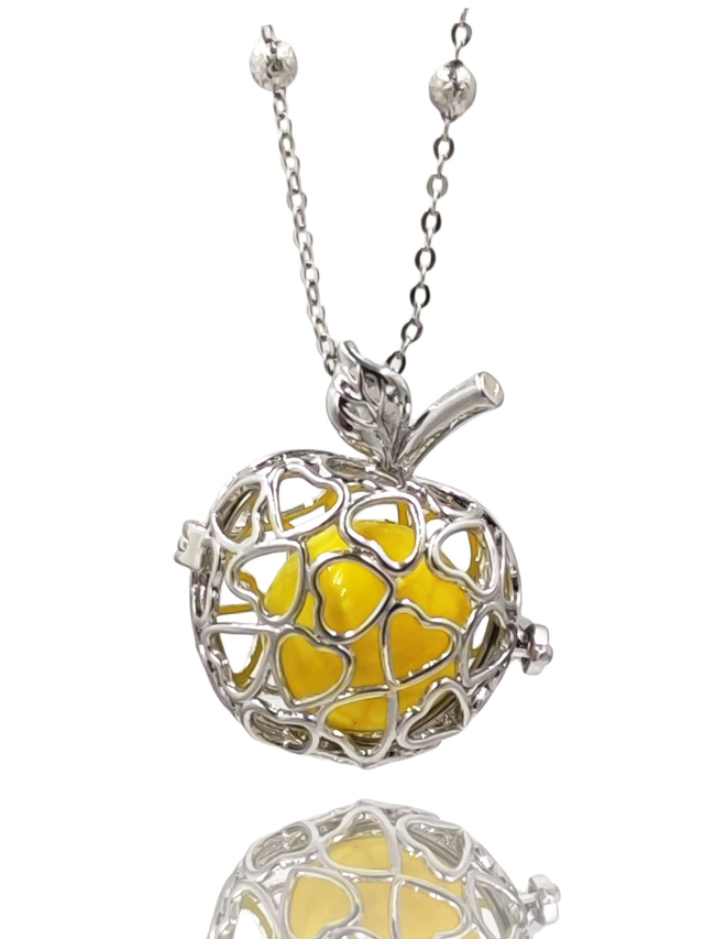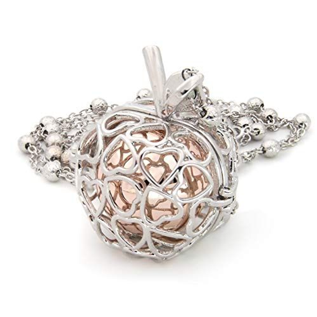 Collana Chiama Angeli Un Dolce Suono Trasmette Serenità Pendente con Mela e cuori dell’angelo Custode in acciaio e lega di bronzo placcato Oro Bianco