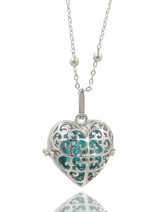 Collana Chiama Angeli Un Dolce Suono Trasmette Serenità Pendente Cuore e fiori dell’angelo Custode in acciaio e lega di bronzo placcato Oro Bianco