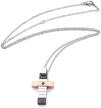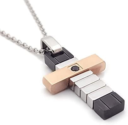 Rendi unico il tuo look con questa elegante collana con ciondolo croce, simbolo di preghiera, impreziosita da un zircone nero. Realizzata con acciaio inossidabile, la collana presenta un moschettone placcato in oro bianco e rosa per un tocco di raffinatezza. La sua lunghezza regolabile da 22cm a 25cm assicura una vestibilità perfetta. Confezionata con cura in una scatola elegante, include un certificato di garanzia e un pannetto per la manutenzione del gioiello.