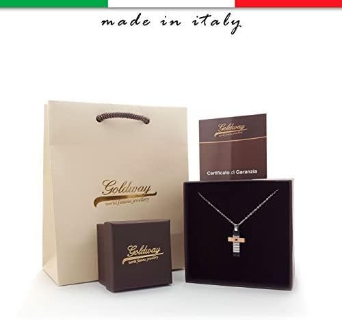 Collana con Ciondolo Croce - Simbolo di Preghiera con Zircone Nero, Placcato in Oro Bicolore, Regalo per Uomo e Ragazzo (Made in Italy)