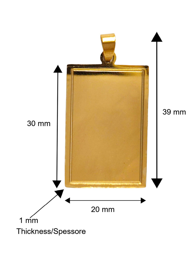 Elegante Design Rettangolare: La piastra rettangolare in acciaio 316 L, con una altezza di 39 mm e una larghezza di 20 mm, offre un aspetto distintivo e contemporaneo.
